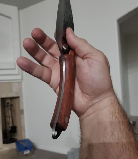 私はあなたのナイフをもう 1 つ所有しており、それもとても気に入っています。昨夜、ブラックストーン グリルで料理をしているときに初めて使用しました。私の調理器具を完璧に褒めてくれます。